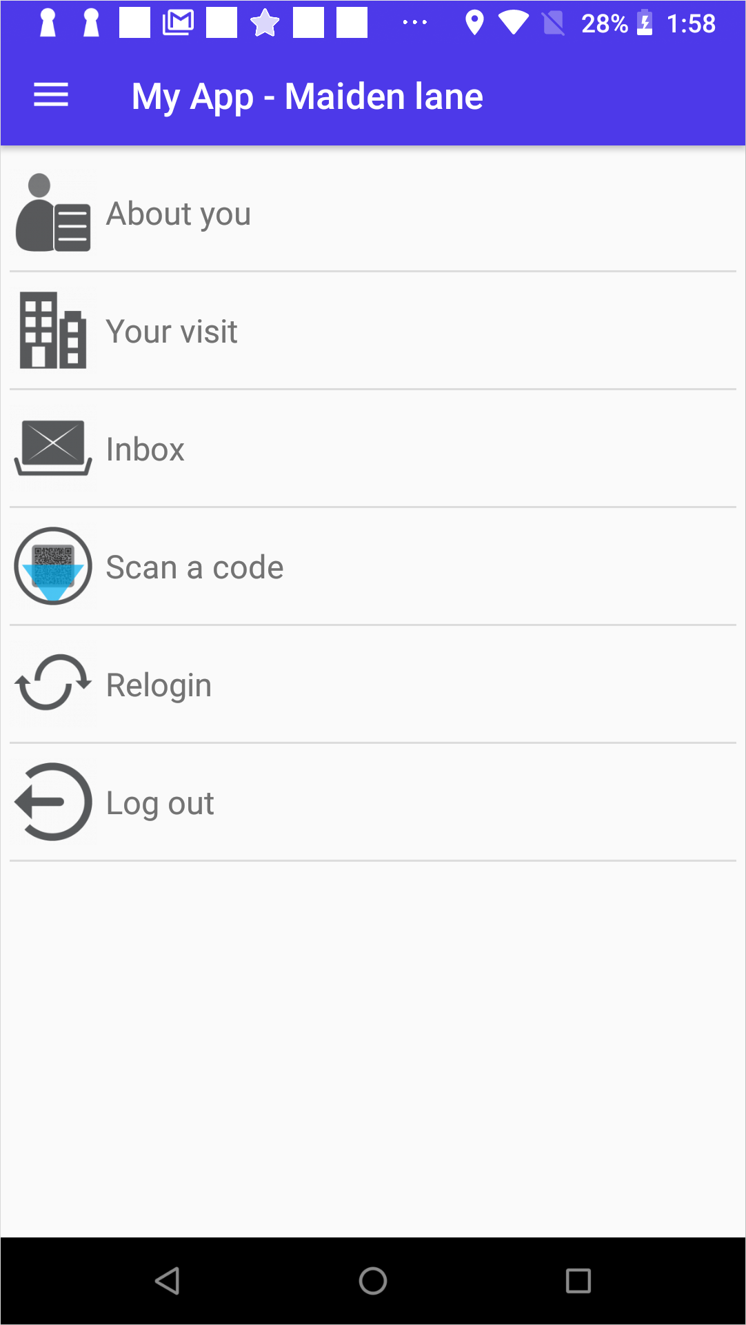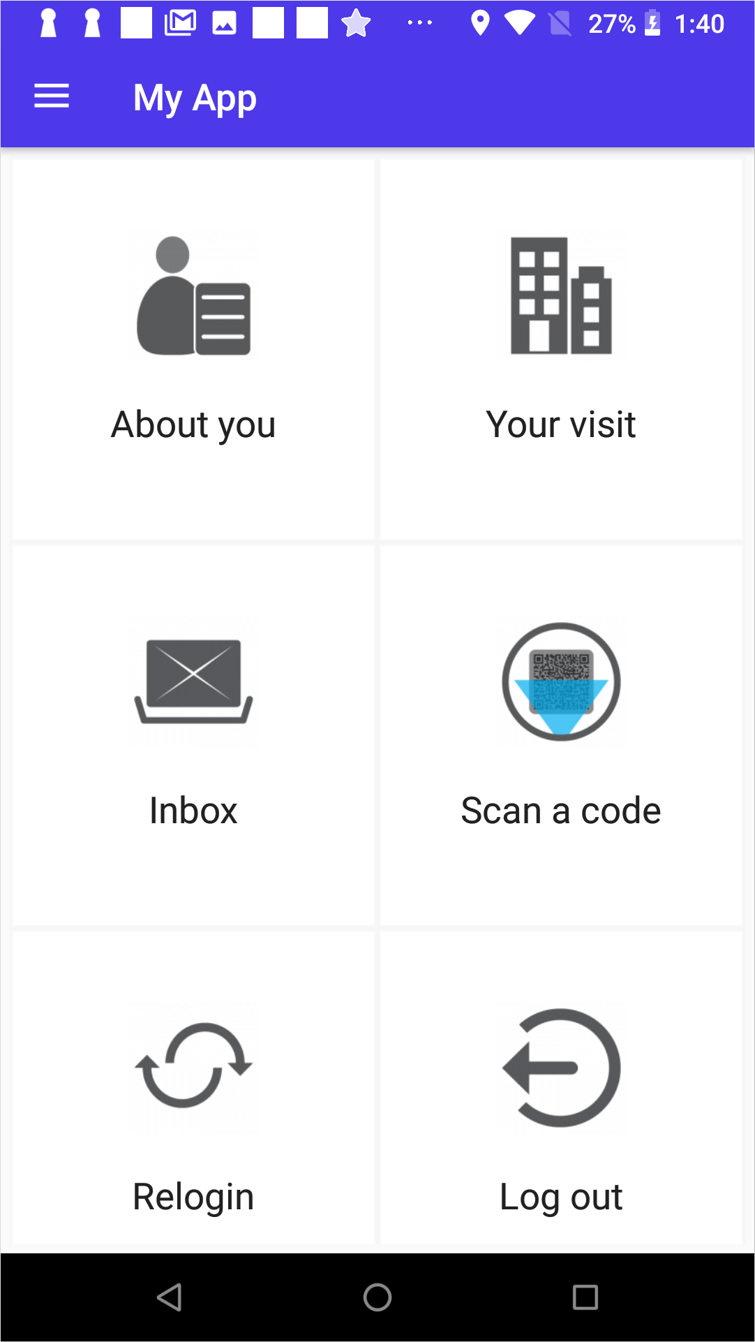 This layout features the application menu shown on the main screen. The menu can be implemented as a grid, list, or buttons: