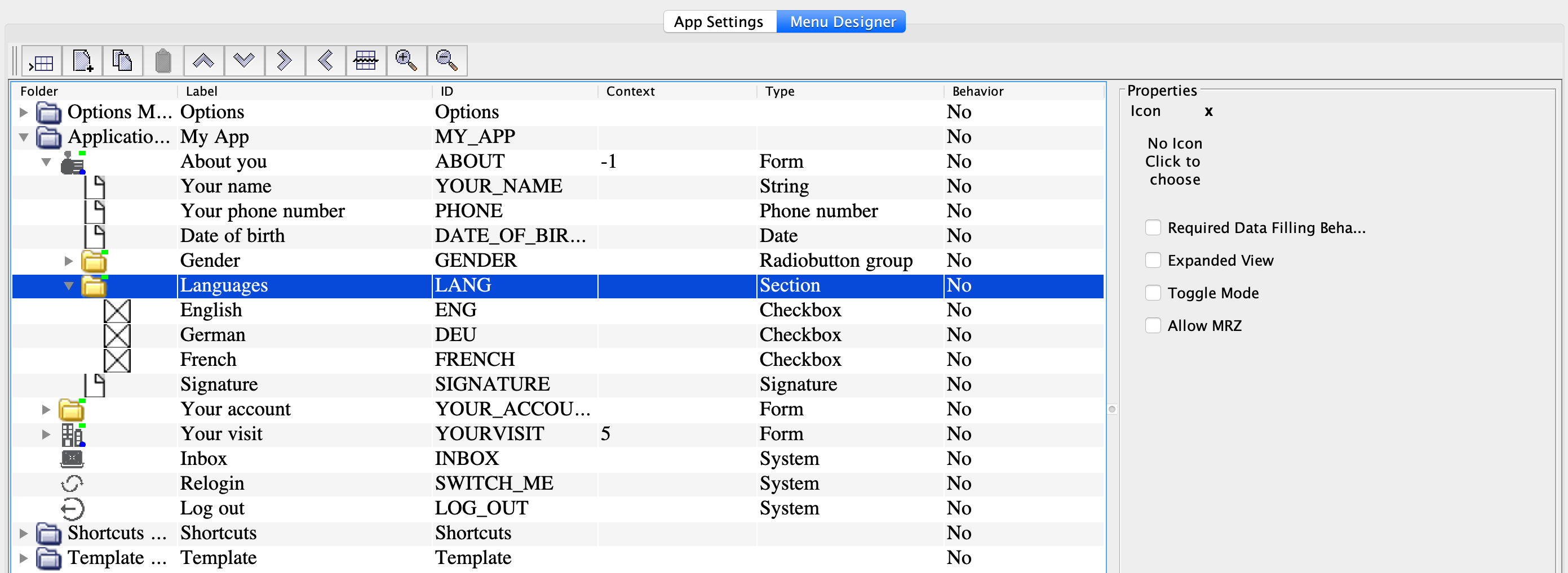 To add a group of checkboxes, nest them in the Section node:
