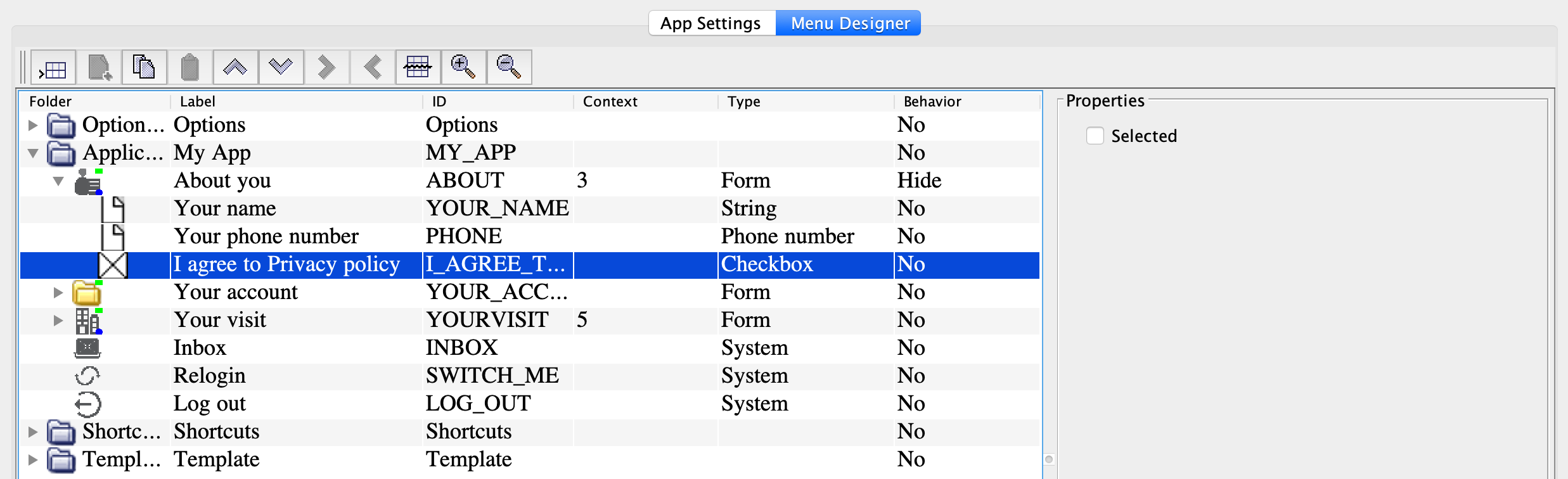 | Selected | Indicates if the checkbox should be selected by default. |