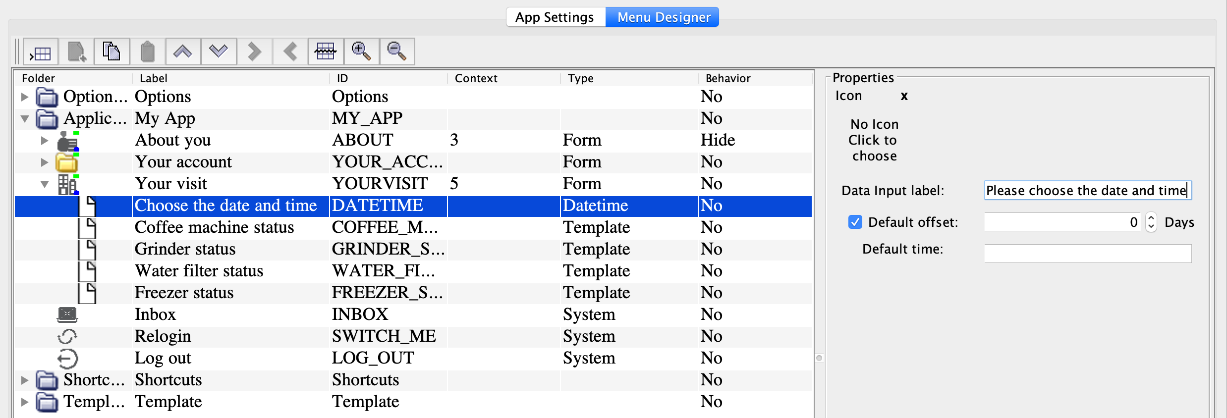 The DateTime node allows the user to report date and time. The user picks up date and time from a popup window. The sent values are shown in the Reslink web service in the DD-MM-YYYYHH:MM:SS format.