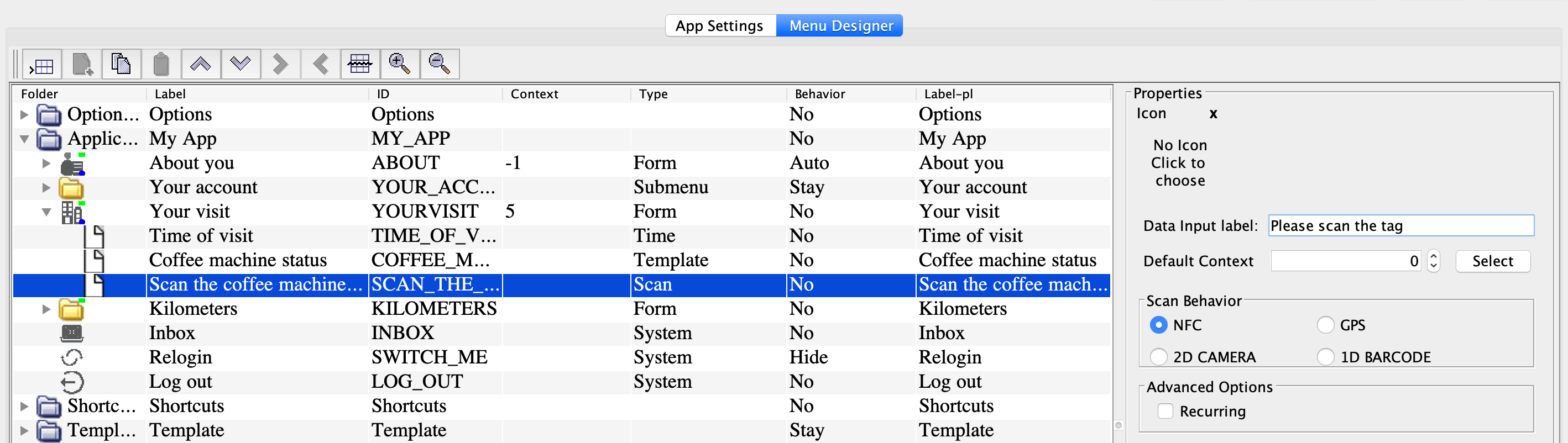 Recurring Allow scanning several tags/ codes in a row without returning to the main app menu.