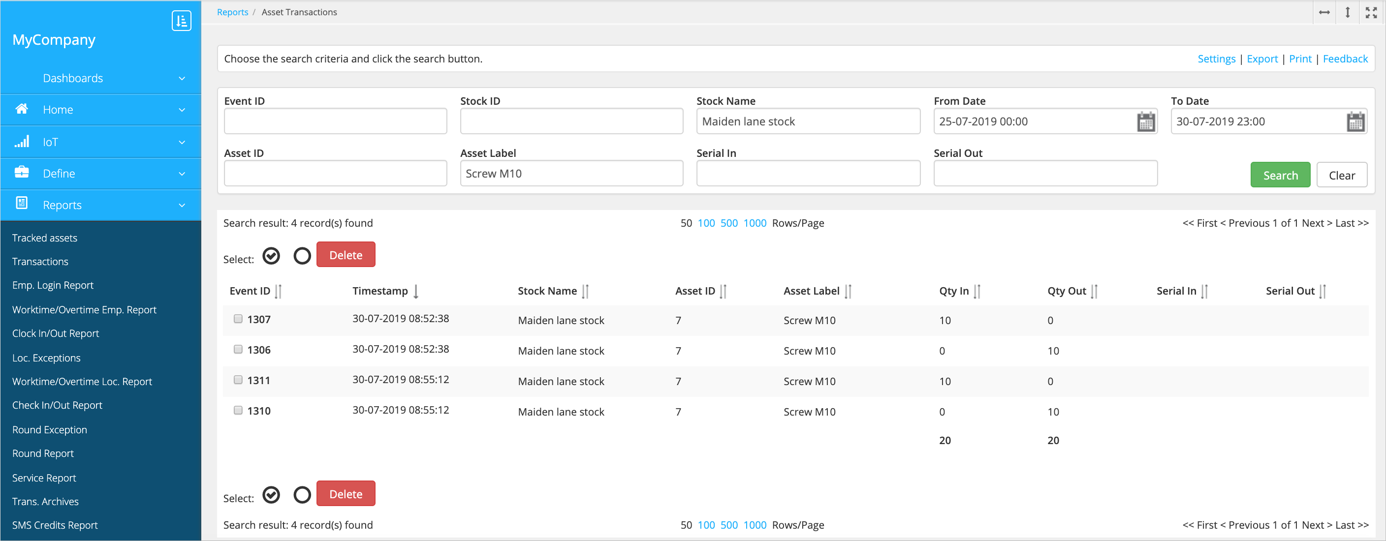 To view the untracked assets in each stock, go to and enter the Asset label and Stock name. Each transaction has log entries for the quantity in and out of the stock, so you can view the in- and outflows separately: