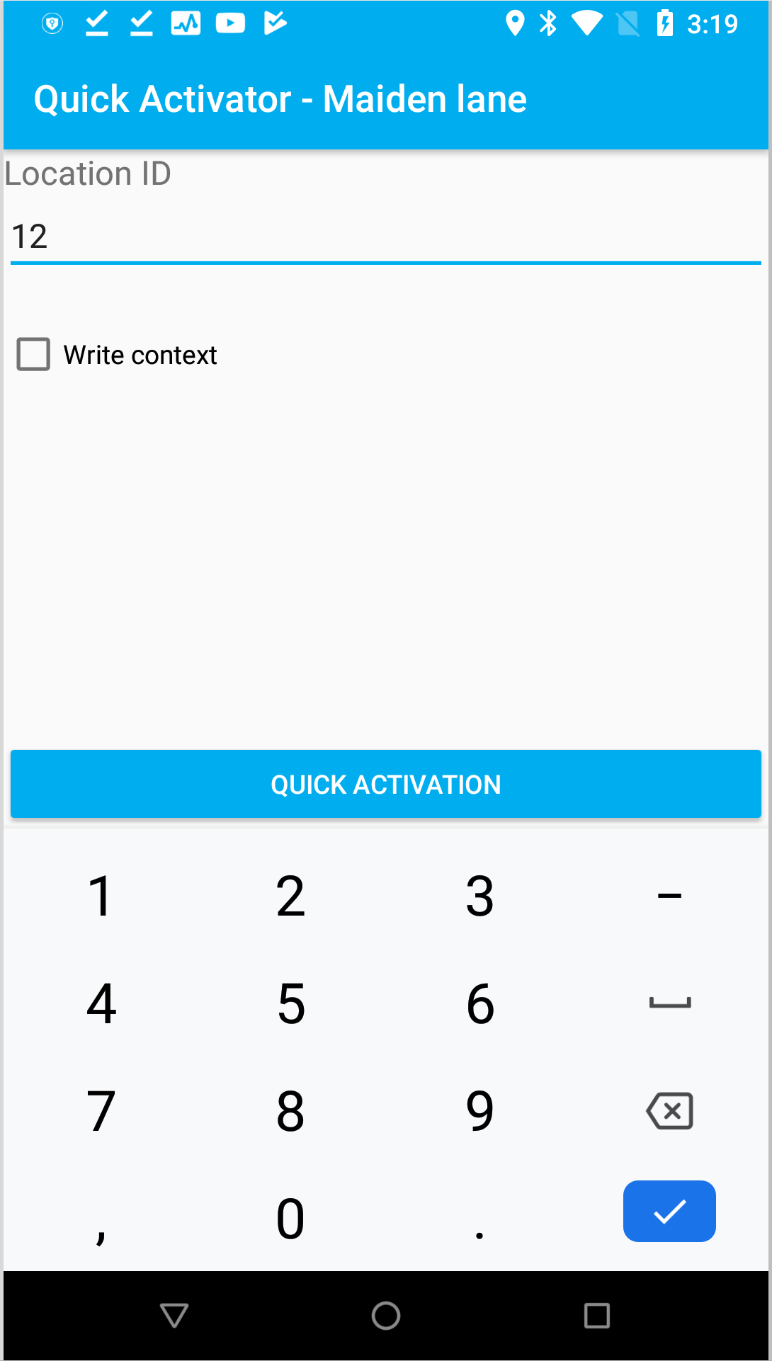 To use an NFC tag at location, you need to activate it — that is, link the tag to the location by writing the location ID on the tag. To do this: