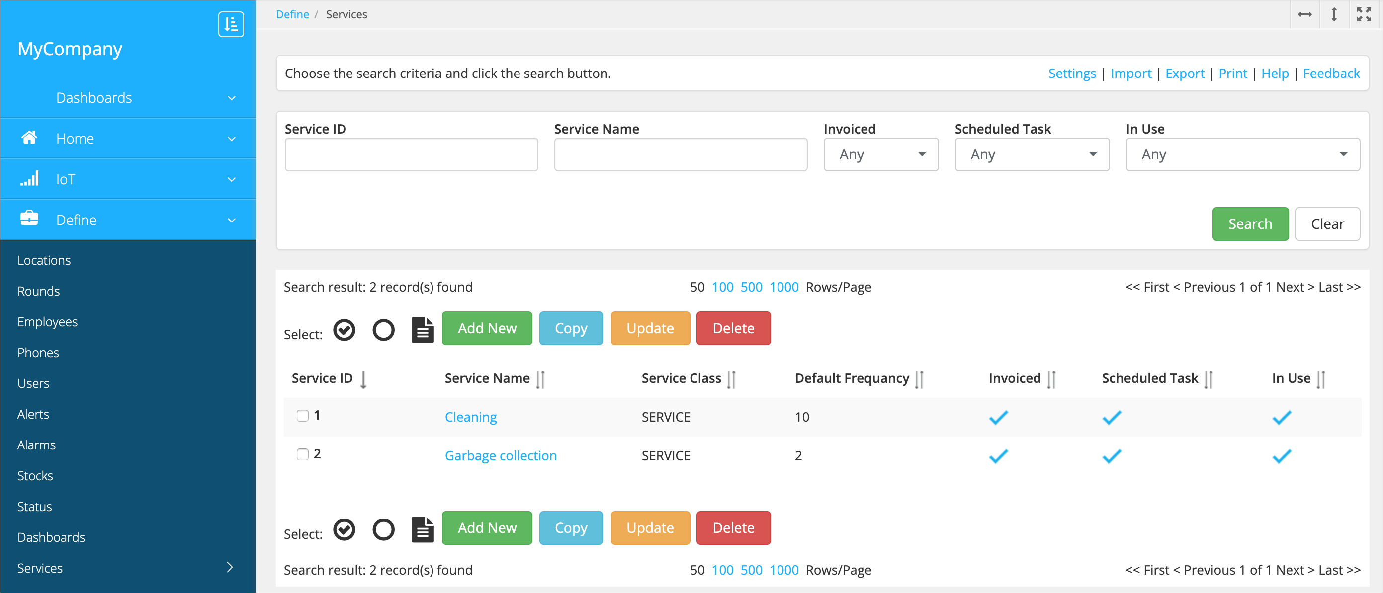 - If the service is scheduled, in other words, has to be performed regularly. As the user performs the service for the first time and reports it via the app, the next service is scheduled and added to the Location calendar and the Employee calendar.