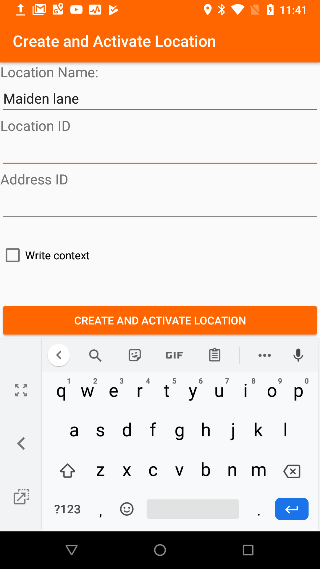 For NFC apps, touch the tag to activate it (this writes the location ID to the tag memory).