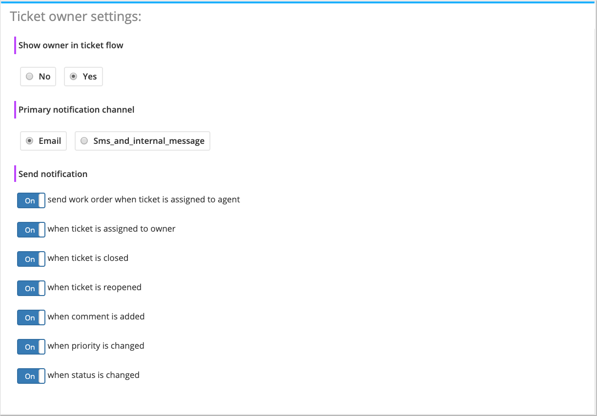 - Ticket owner settings (Optional) – Notifications for the ticket owner.